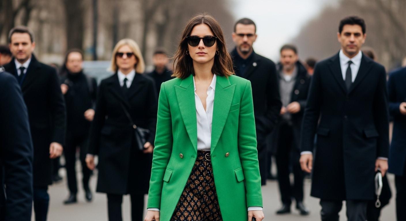 - Oversized coats and blazer-led outfits remain widespread, frequently paired with chunky sneakers or streamlined trainers, signaling a preference for comfort without sacrificing line or drama.